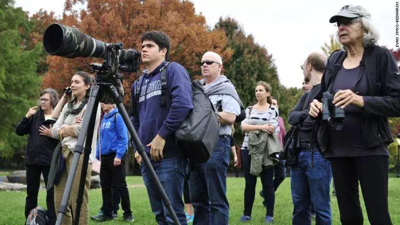 鸳鸯出现在中央公园的消息经媒体和网友传开后,很多当地的观鸟爱好者们便蜂拥而至,举着长枪短炮,在中央公园守候着鸳鸯的出现。