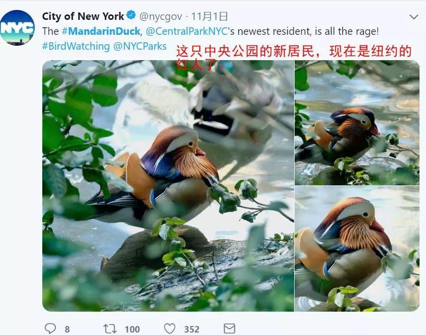 纽约栖息着很多鸟类,有八哥、鹰、麻雀、海鸥等等,但是要问当下最红的鸟是谁?无疑是这只鸳鸯莫属了。