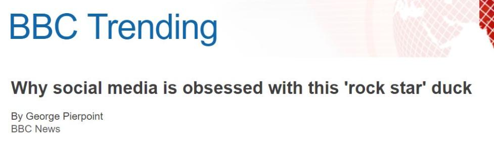 如此大红大紫,远在英国的媒体BBC都还专门写了一片文章,分析为何人们在社交媒体上如此迷恋这只鸳鸯。