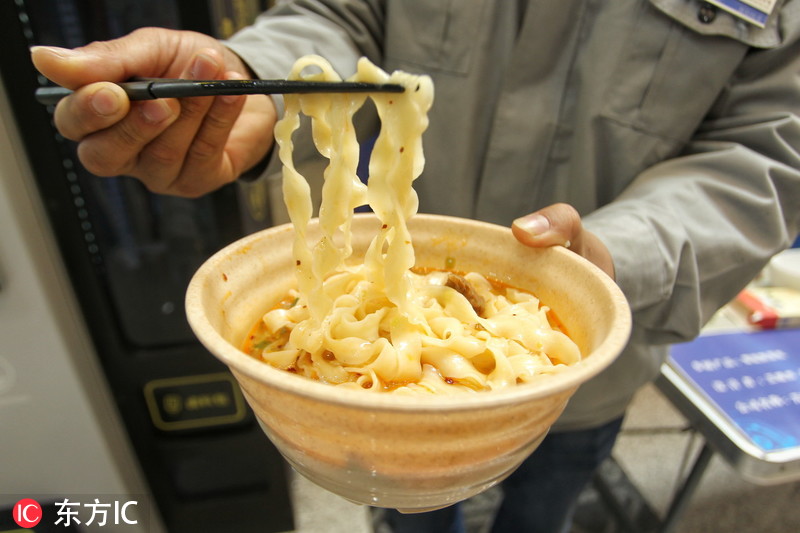2018年11月1日,2018中国(郑州)产业转移系列对接活动开幕,在优秀工业设计成果展的现场,一台现制鲜面条机和一台现做现吃的面条机吸引众人目光。据工作人员介绍,这台现制鲜面条机仅需要8秒就能将面粉做成鲜面条,快捷方便,并且制作的流程都是可见的,便于发现卫生安全隐患,这种面条机目前适用于各种生鲜超市和小区内。来源:东方IC