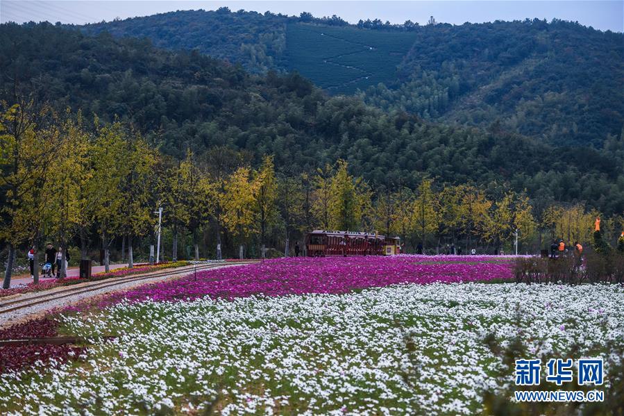11月2日,游客在金黄的银杏林与“五彩花海”间观赏秋色。 新华社记者 徐昱 摄