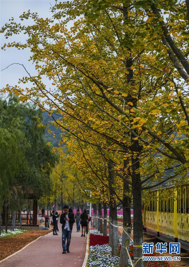 11月2日,游客在金黄的银杏林中观赏秋色。  新华社记者 徐昱 摄