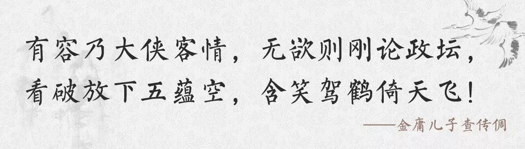 金庸在小说《倚天屠龙记》里创造了“倚天一出,谁与争锋”的精彩故事,擅长倚天剑法的郭襄是他很喜欢的一个可爱角色,查传倜追悼父亲的“含笑驾鹤倚天飞”正是一语双关。