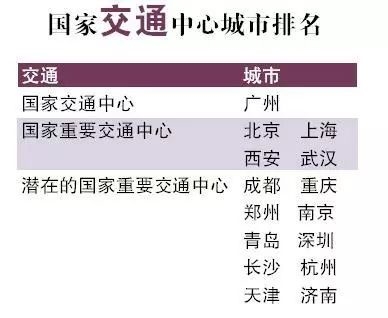 从排名看,广州是国际综合交通枢纽,其国家交通中心指数为1,居全国第一。其交通集聚度和交通联系度指数全国排名分别居第一和第三位。