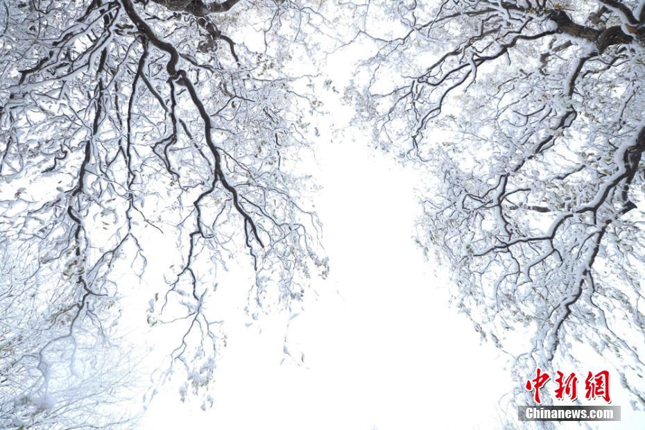 仰望树枝,在雪的覆盖下,尽显别样美。吴希会 摄