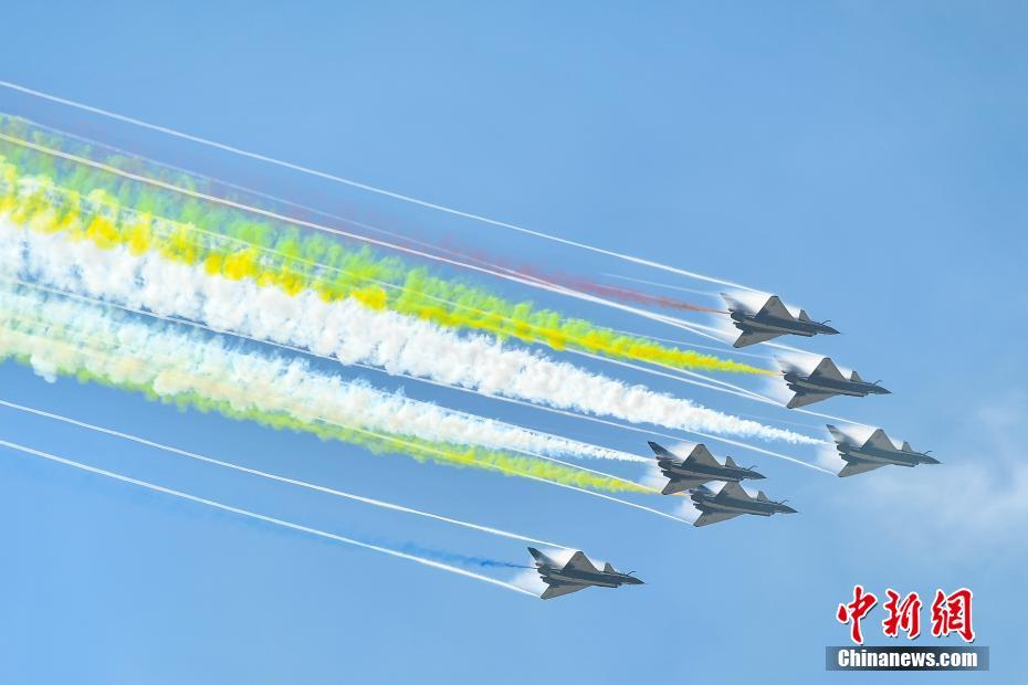 11月6日,中国人民解放军空军八一飞行表演队进行飞行表演。当日,第十二届中国国际航空航天博览会在珠海开幕。中新社记者 陈骥旻 摄