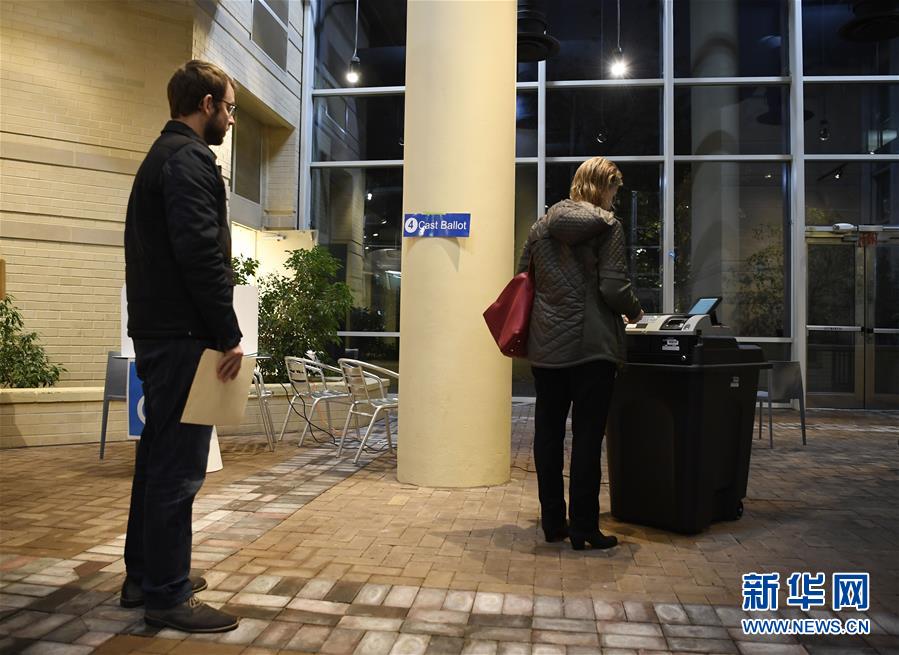 11月6日,选民在美国弗吉尼亚州阿灵顿的一处投票点参加中期选举投票。 美国6日举行2018年中期选举。 新华社记者 刘杰 摄