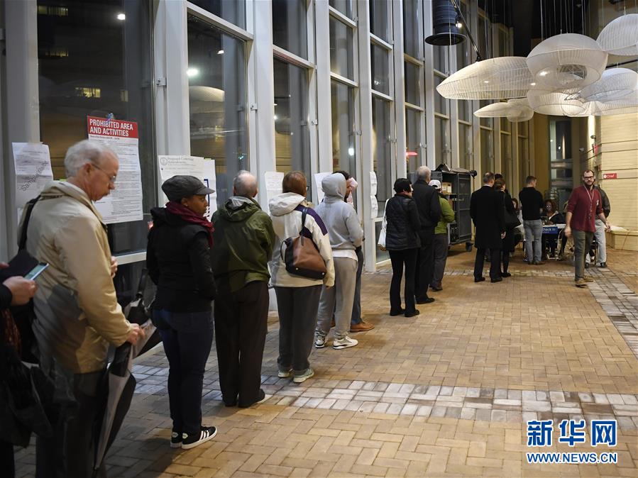 11月6日,选民在美国弗吉尼亚州阿灵顿的一处投票点参加中期选举投票。 美国6日举行2018年中期选举。 新华社记者 刘杰 摄