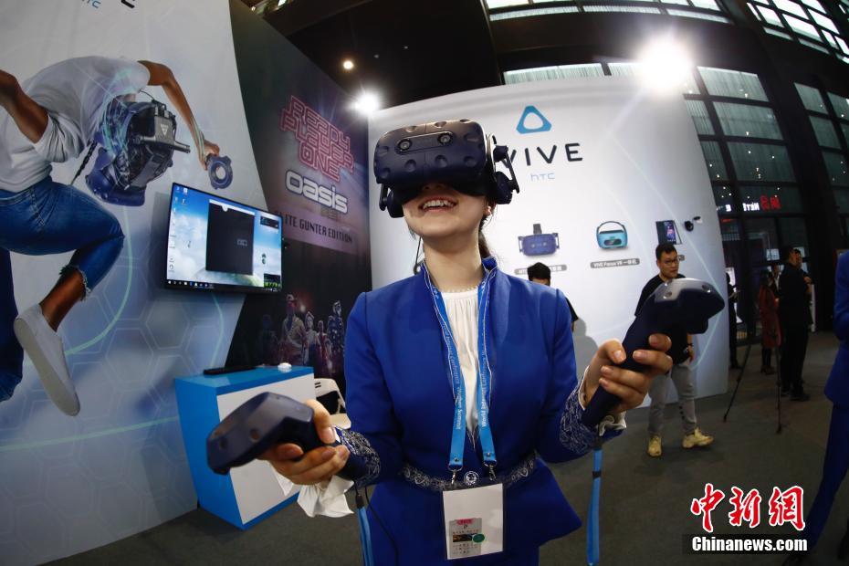 11月7日,在浙江乌镇举行的第五届世界互联网大会“互联网之光”博览会会场内,参观者体验HTC Vive(虚拟现实头戴式显示器)产品。中新社记者  杜洋 摄
