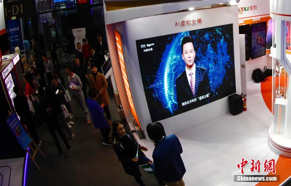 11月7日,在浙江乌镇举行的第五届世界互联网大会“互联网之光”博览会会场内,“AI虚拟主播”引人注意。在现场的体验中,观众只要输入一句既有的新闻文本,屏幕上就会出现一位虚拟的新闻主播,他不仅会用和真人一样的声音进行播报,连唇形、面部表情也能完全吻合。中新社记者 杜洋 摄