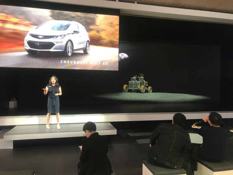 通用汽车美国总部搭建的全息影像展台,第一次在中国车展上展示“美国国宝”——通用为NASA打造的月球车