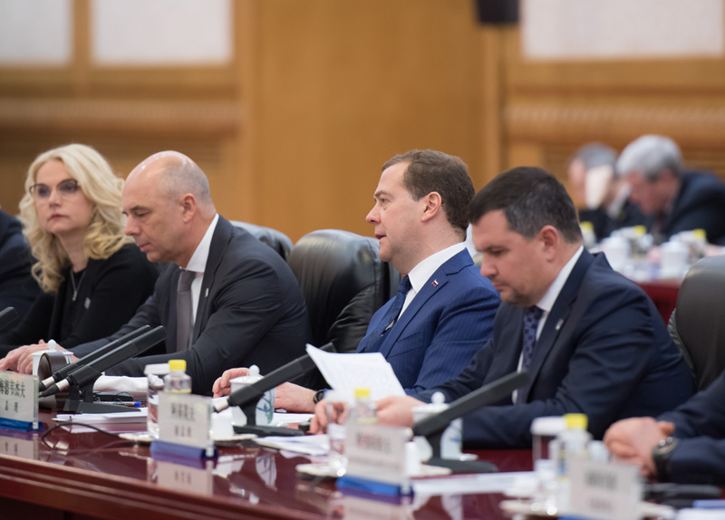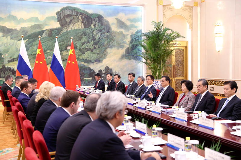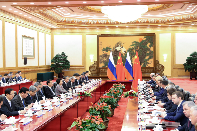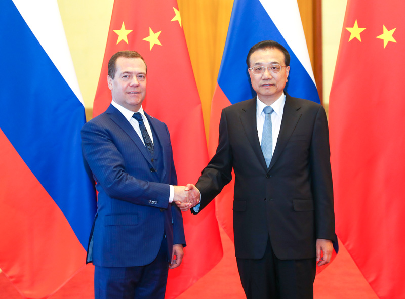 11月7日上午,国务院总理李克强在北京人民大会堂与俄罗斯总理梅德韦杰夫共同主持中俄总理第二十三次定期会晤。国务院副总理、中俄投资合作委员会、能源合作委员会中方主席韩正出席。