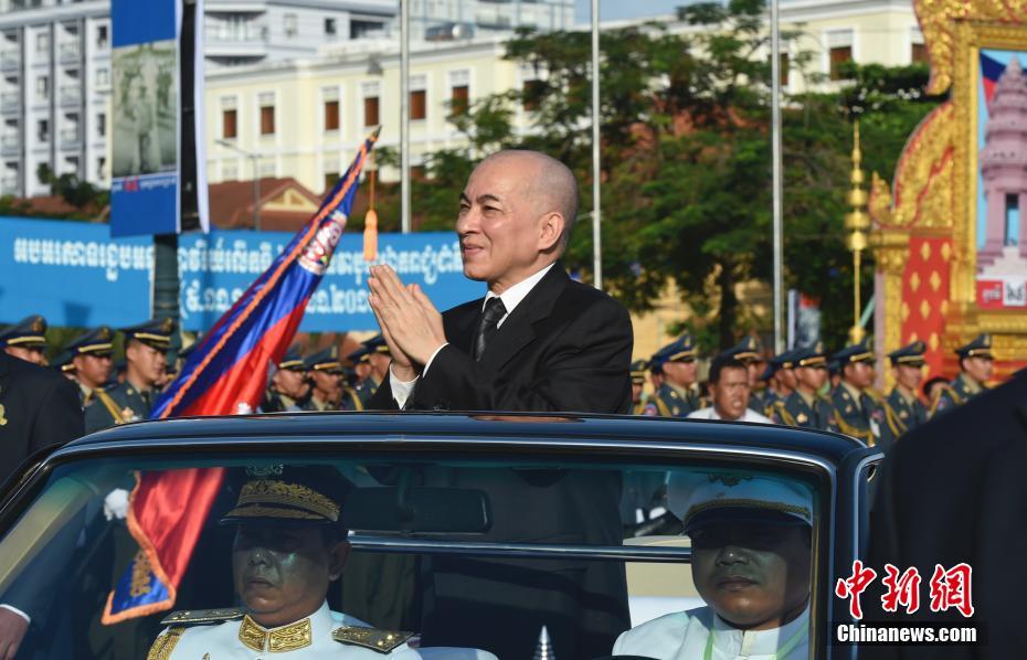 11月9日,柬埔寨首都金边举行盛大“独立日”庆典,庆贺国家独立65周年。1953年11月9日柬埔寨人民从法国殖民者手中夺回了国家主权,结束了近一百年的殖民统治。这一天正式成为柬埔寨独立日。图为柬埔寨国王诺罗敦·西哈莫尼乘敞篷汽车参加庆典。中新社记者 黄耀辉 摄