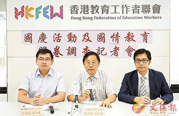 海外网11月10日电 为了解香港中小学幼稚园国庆庆祝活动情况,以及教师对国情教育的看法,香港教育工作者联会(教联会)在10月国庆月向全港学校发问卷,结果显示,分别有逾七成教师认为《国家的历史与发展》及《国旗、国歌、国徽及升旗礼》课题应纳入国情教育内。教联会指,当中后者较去年大增11个百分点,相信与《国歌法》本地立法进程有关。