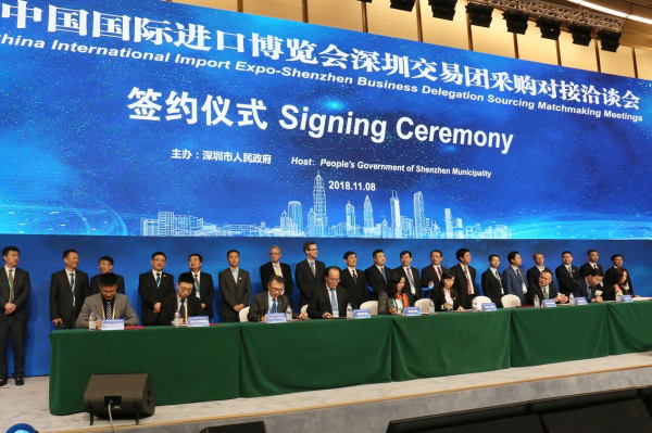 2018年11月8日,中国首届国际进口博览会举行交易采购签约仪式。 图片源于进博会官网