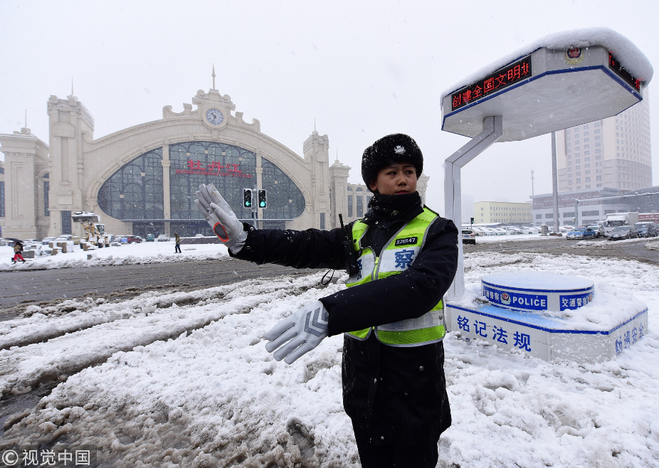 暴雪侵袭黑龙江牡丹江 市民踏雪出行