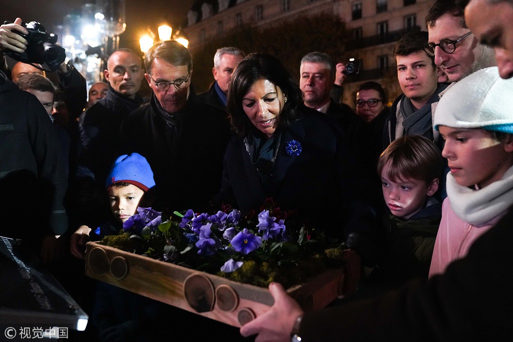 巴黎市政厅纪念一战结束百年 9万多支花朵为逝者绽放