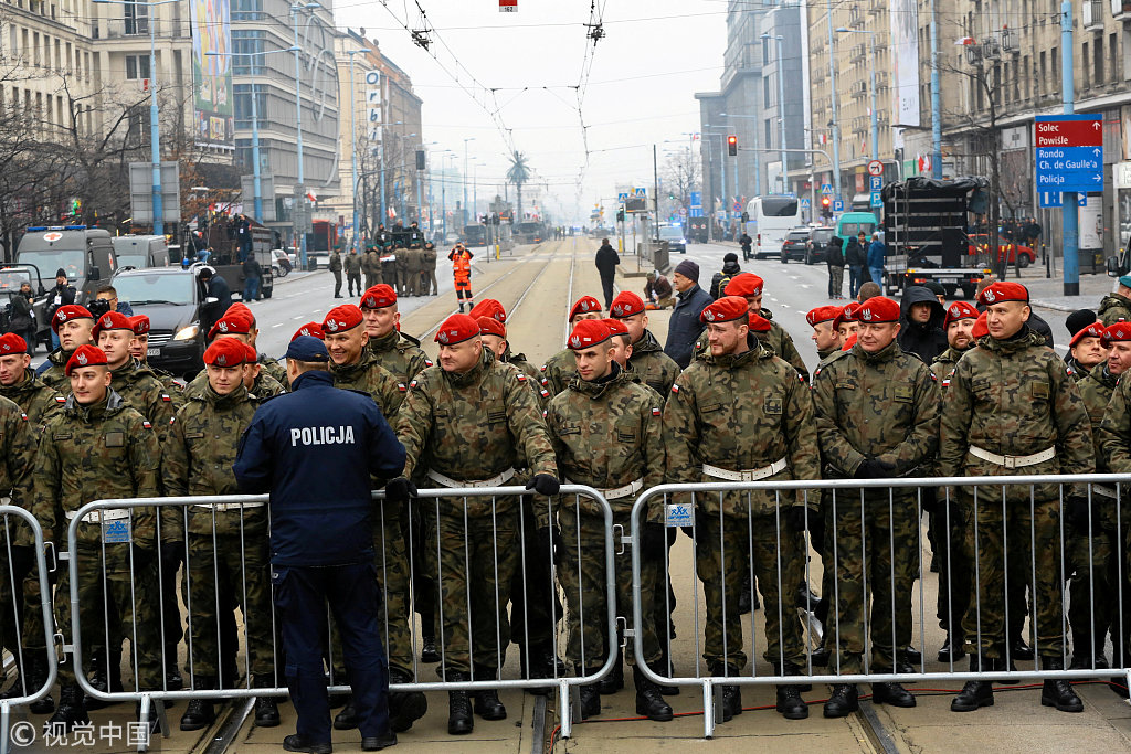 当地时间2018年11月11日,波兰华沙,民众参加独立游行,庆祝波兰恢复独立100周年。