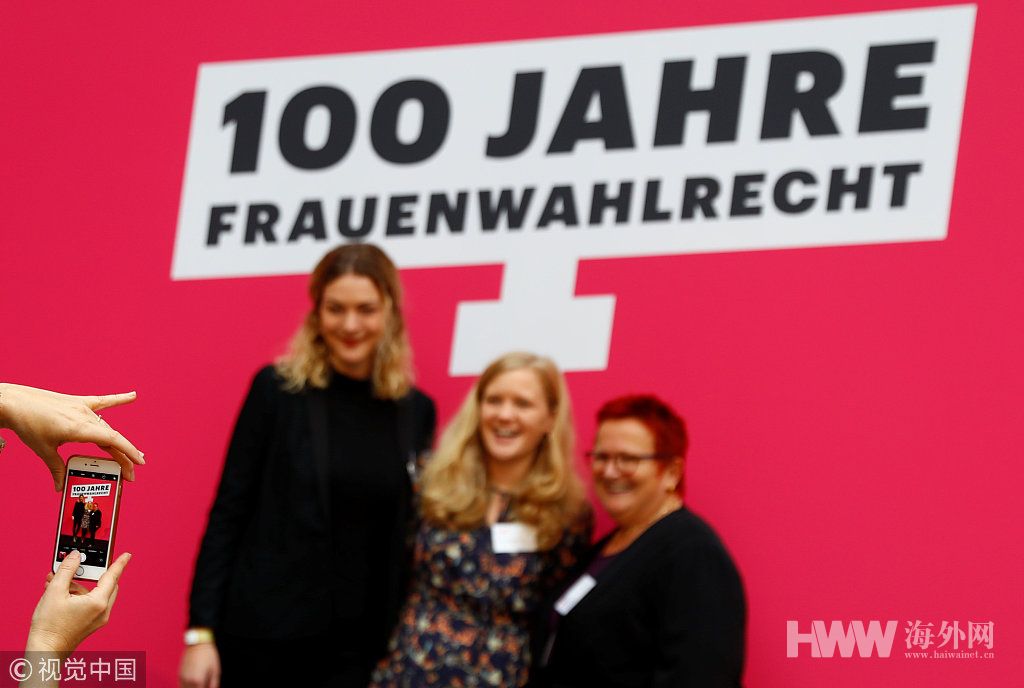 默克尔出席女性获投票权百周年 再现经典手势