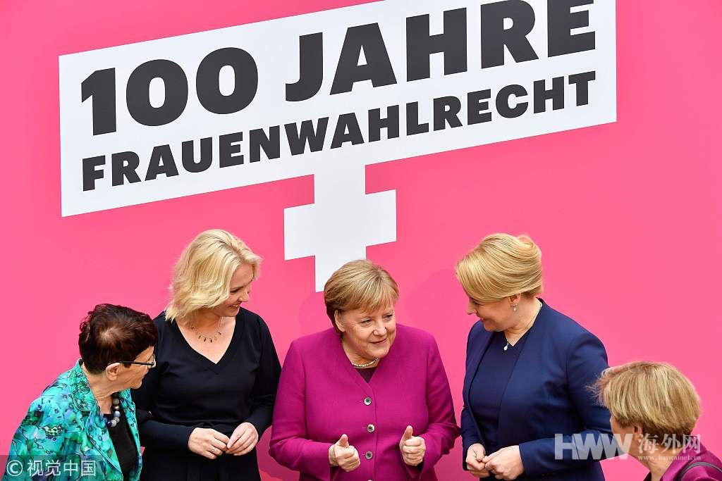 当地时间2018年11月12日,德国柏林,当地举行庆祝妇女获得投票权100周年的纪念活动,德国总理默克尔出席并发表讲话。