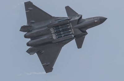 这是歼-20战机首次在公开飞行展示中挂弹开舱。