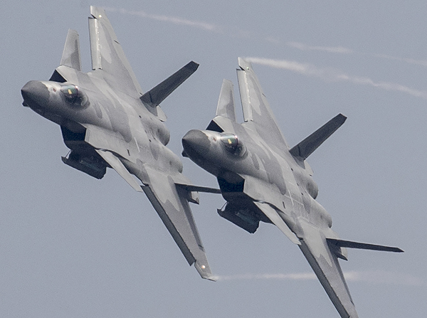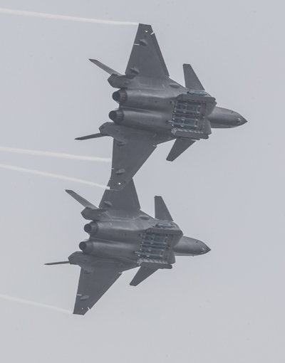当日10时53分,4架全新涂装的歼-20战机,以四机编队进行了约8分钟的飞行展示,将本届航展推向高潮——