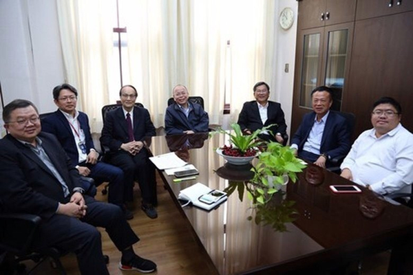 民进党“立委”陈明文(右三)、蔡易余(右二)和嘉义县长候选人翁章梁(右一)前往“行政院”,拜会“政务委员”张景森(左四)与台北故宫院长陈其南(左三),讨论“国宝”到台北故宫南院。(图片取自台媒)