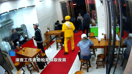 进店的人拿着纸箱换宵夜