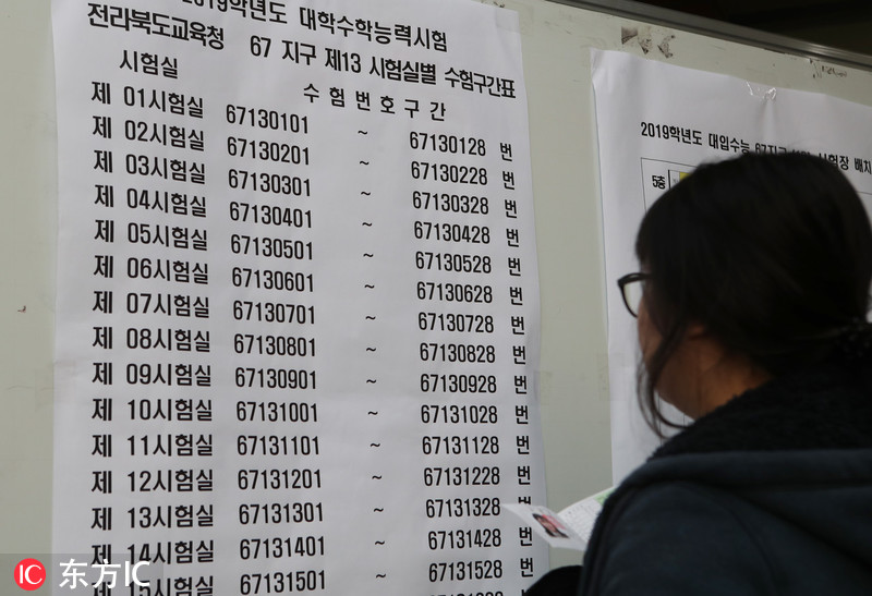 当地时间2018年11月15日,韩国首尔、春川、浦项市,2019韩国大学入学考试第一天,韩国各地考生赶赴考生,学生家长陪同送考为考生加油大气,更有考生后辈在考场外跪地祝福学长学姐“高考”顺利。