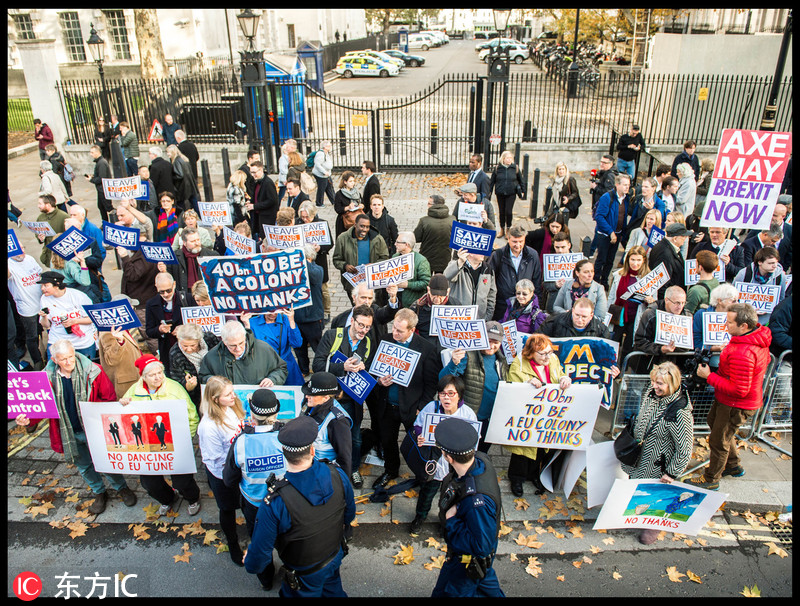 英国民众聚集唐宁街 抗议脱欧协议获内阁支持