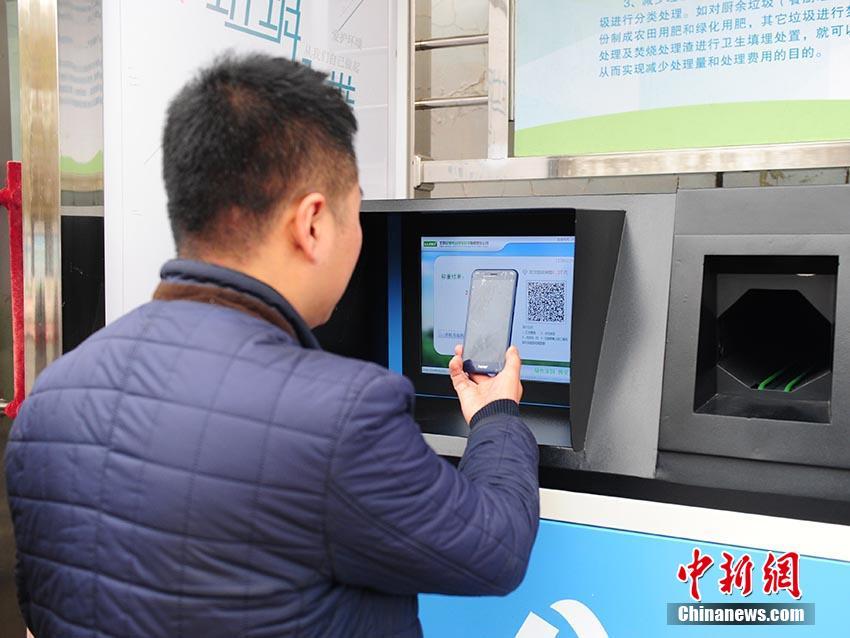 居民扫码之后进行废品投放。刘栋 摄