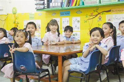 文莱中华中学附属幼儿园的小朋友在汉语学习课堂上。 本报记者 孙广勇摄