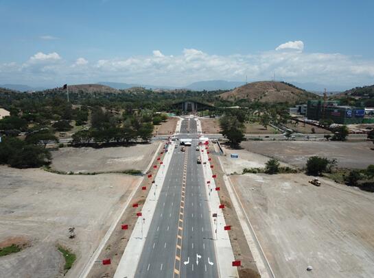 即将通车的独立大道为双向六车道,是巴新目前等级标准最高的道路,也是此次APEC峰会重点配套项目。崭新的道路两侧旗杆顶端装饰着中国结,并悬挂有中国国旗和巴新国旗。