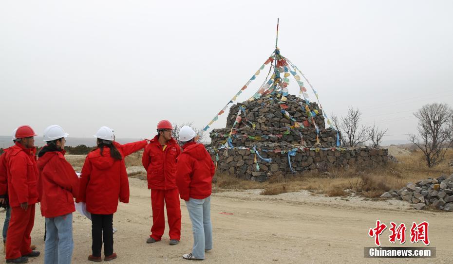 陕京四线内蒙古乌兰察布分输站站长王普游正在介绍该站围墙外的敖包。当地民众常到此祈福。该站是陕京管道系统中最冷的一处。冬季最低温可达-35℃。为防止干线冻堵,10月份该站已准备好50吨甲醇。解冻设备蒸汽锅炉车也将于11月下旬到场。中新社记者 苏丹 摄