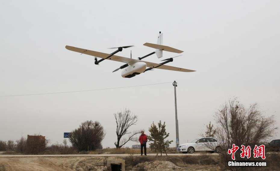 内蒙古托克托压气站正在试飞无人机巡线。陕京四线内蒙古段709公里中有249.3公里为沙漠,35.27公里为峁梁沟壑地区,232.83公里为山地丘陵地区,鄂尔多斯地区草场业主用铁丝网对地界进行圈围,这些因素都为巡线增加了难度。无人机巡检非常适合该地区。中新社记者 苏丹 摄