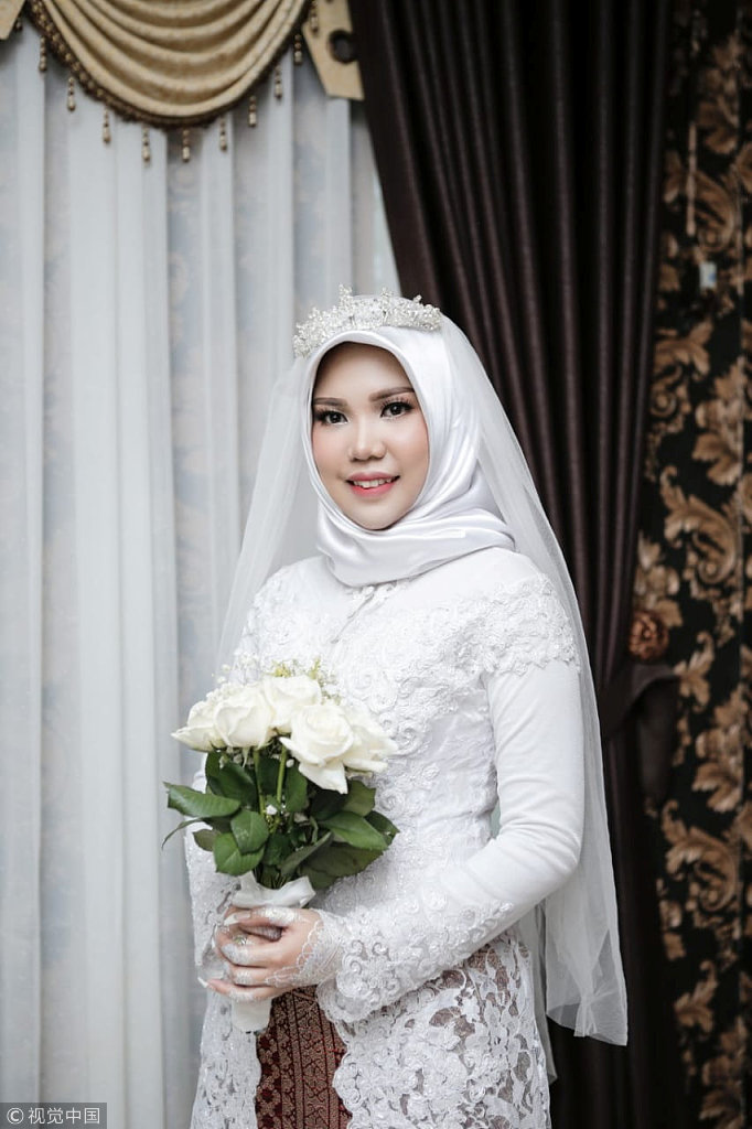 里约普拉塔玛·南达的未婚妻身穿雪白婚纱,手捧鲜花。原计划于11日举行的婚礼如今只有她一人完成。图片来源:视觉中国