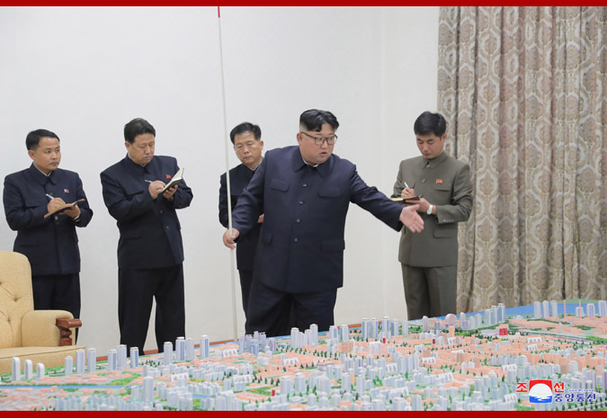 据朝中社16日报道,朝鲜最高领导人金正恩视察了新义州市,指示城市开发应符合当今时代的要求,并强调,新义州开发项目要在几年内看到成果。(图源:朝中社)