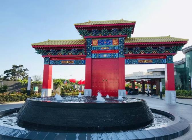 △中国代表团下榻酒店新建的中国门。(央视记者拍摄)