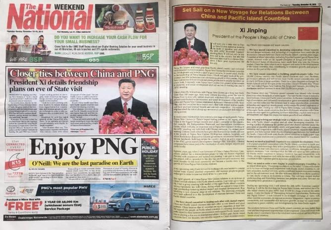 △巴新媒体刊登习近平署名文章《让中国同太平洋岛国关系扬帆再启航》(央视记者茆丹拍摄)
