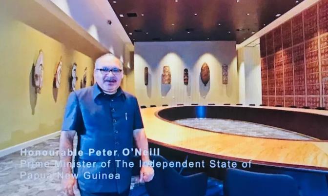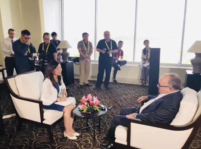 △习近平到访前,巴新总理奥尼尔接受央视记者专访。上任七年来,他12次到过中国。他说,“对于我们所面临的挑战,习近平主席有着平衡的解决之道。我们坚定支持他。”(央视记者黄耀祖拍摄)