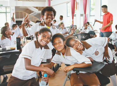 “好一朵美丽的茉莉花,好一朵美丽的茉莉花,芬芳美丽满枝丫,又香又白人人夸……”南半球夏日的阳光下,孩子们的歌声在布图卡学园的校园里久久回响。这座位于巴布亚新几内亚首都莫尔兹比港的学校,刚刚在中国援建下完成改扩建工程,校园崭新而美丽。