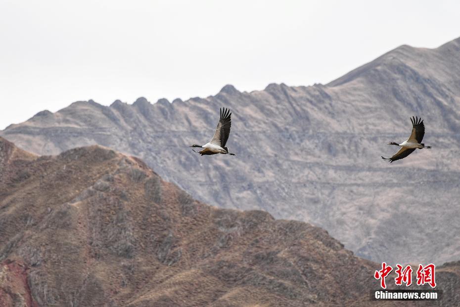西藏是世界上最大的黑颈鹤越冬和繁衍地。中新社记者 何蓬磊 摄