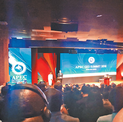 亚太经合组织工商领导人峰会现场。 本报记者 杜尚泽摄