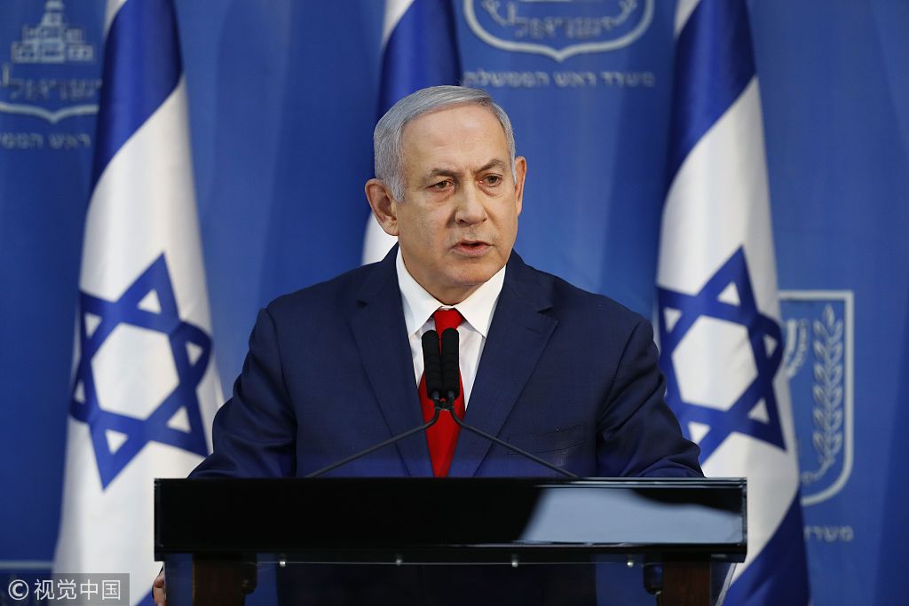 当地时间2018年11月18日,以色列特拉维夫,以色列总理内塔尼亚胡在以色列国防部出席新闻发布会。18日晚,内塔尼亚胡宣布将兼任以色列国防部长。内塔尼亚胡同时强调,在当前的安全形势下,提前举行选举是“不负责任的”。