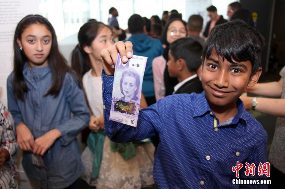当地时间11月19日,一位加拿大多伦多小学生向记者展示刚刚换取的加币10元新钞票。加拿大当天正式发行其首张垂直设计的钞票。这张钞票上印有约70年前推动加拿大反种族隔离政策的黑人女性维奥拉·戴斯蒙德(Viola Desmond)的肖像。维奥拉也成为出现在加拿大钞票上的首位黑人,以及首位非皇室女性成员。中新社记者 余瑞冬 摄