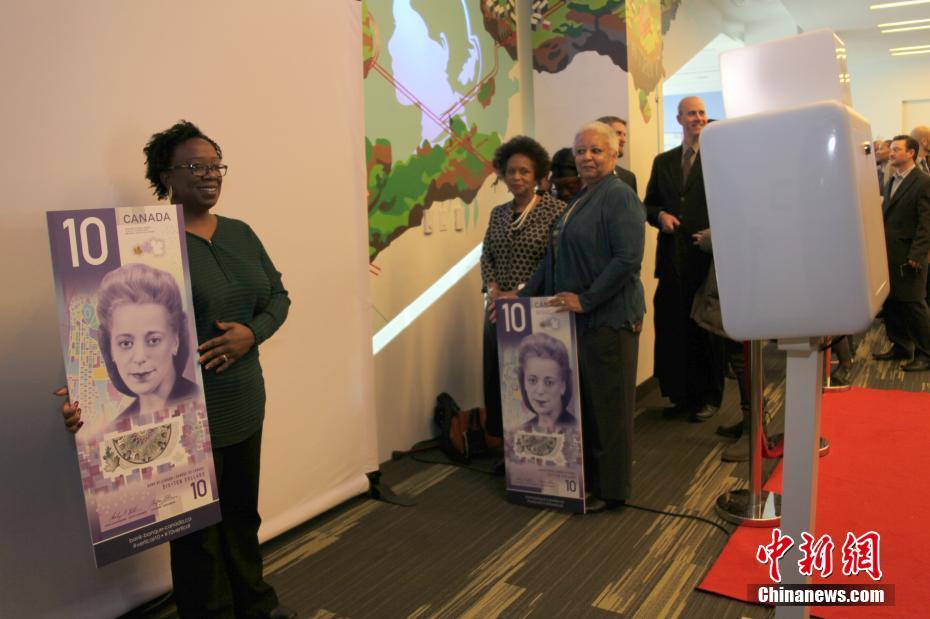 当地时间11月19日,加拿大多伦多市民在加币10元新钞票发行仪式上手持新钞模型排队拍照留念。加拿大当天正式发行其首张垂直设计的钞票。这张钞票上印有约70年前推动加拿大反种族隔离政策的黑人女性维奥拉·戴斯蒙德(Viola Desmond)的肖像。维奥拉也成为出现在加拿大钞票上的首位黑人,以及首位非皇室女性成员。中新社记者 余瑞冬 摄
