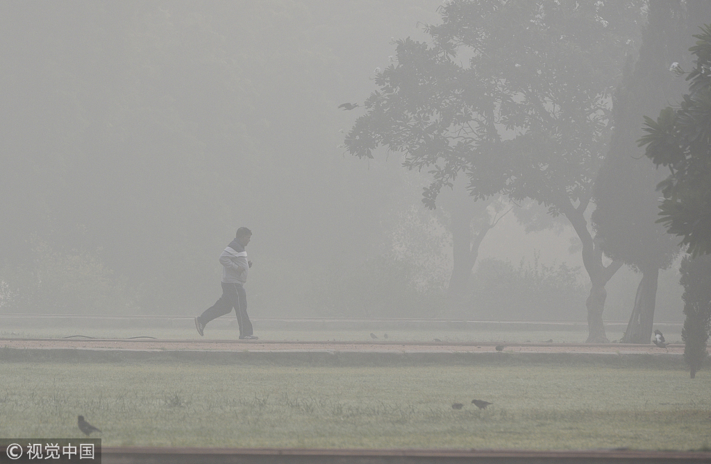当地时间2018年11月20日,印度新德里,当地空气状况恶劣,城市被雾霾笼罩。