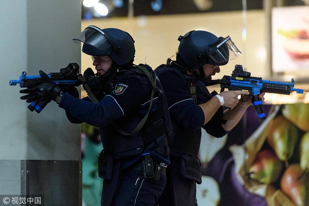 当地时间2018年11月20日,德国北莱茵-威斯特法伦州,科隆波恩机场上演反恐演习,据了解,这是迄今为止在德国机场举行的规模最大的反恐演习。