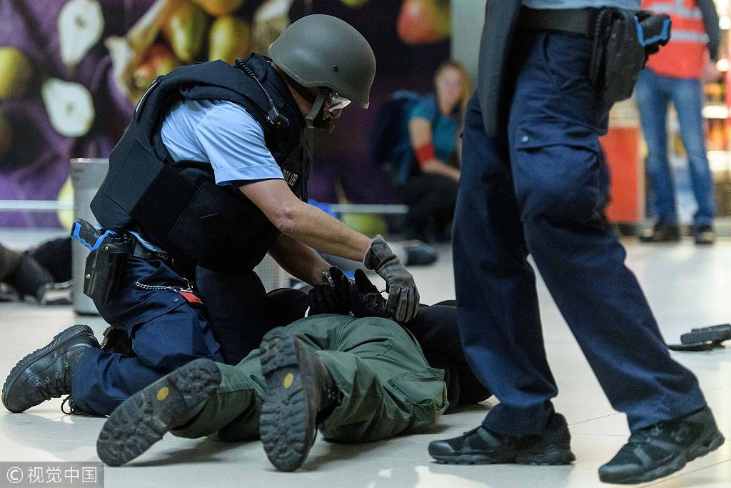 当地时间2018年11月20日,德国北莱茵-威斯特法伦州,科隆波恩机场上演反恐演习,据了解,这是迄今为止在德国机场举行的规模最大的反恐演习。