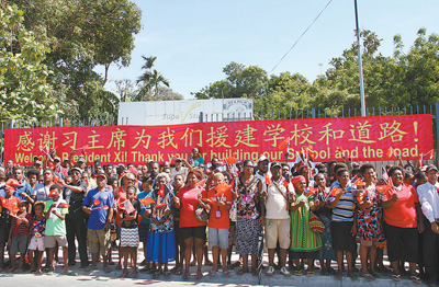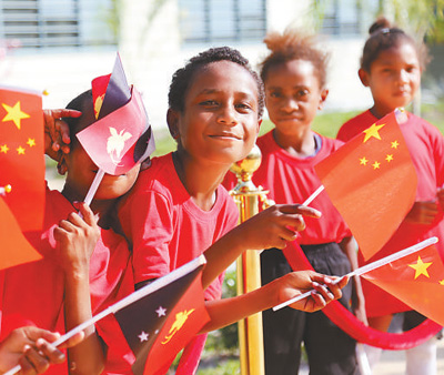11月15日,巴新布图卡学园的学生和家长热烈欢迎习近平主席。 本报记者 李志伟 李 锋摄